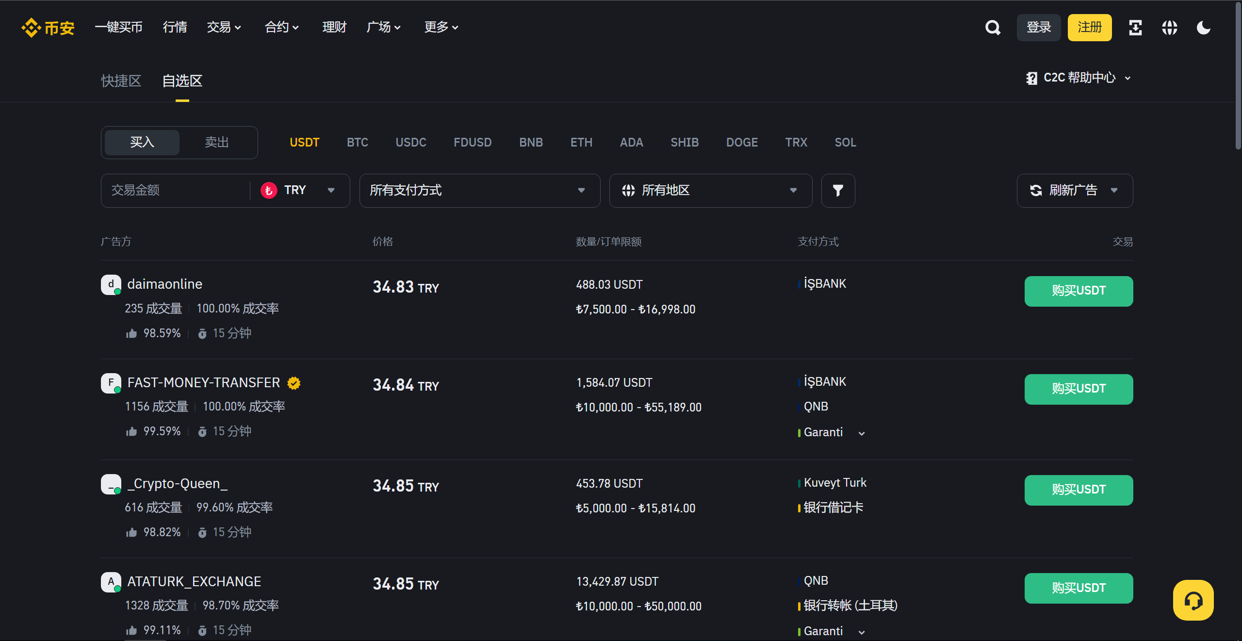 币安C2C平台会根据您的选择显示多个交易对手。您可以根据对方的信誉评级、交易量和价格等因素选择合适的交易对象。良好的信誉评级和较高的交易量通常意味着交易更加可靠。